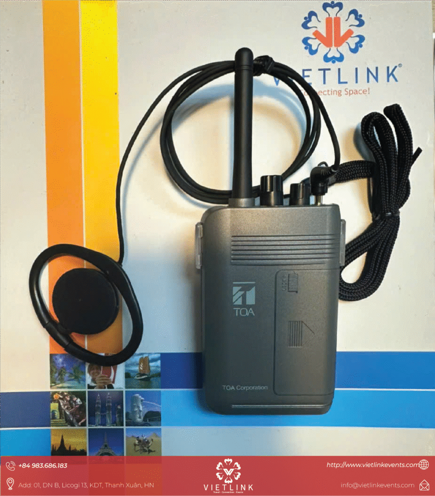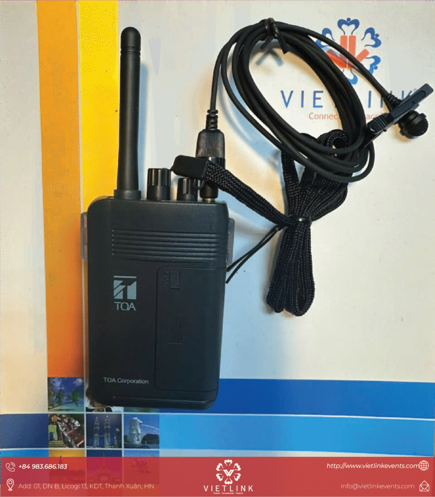 - Tiết kiệm sức – tăng hiệu quả: Hướng dẫn viên chỉ cần đeo micro, khách dùng tai nghe nhận tín hiệu không dây trong phạm vi 100–150m.